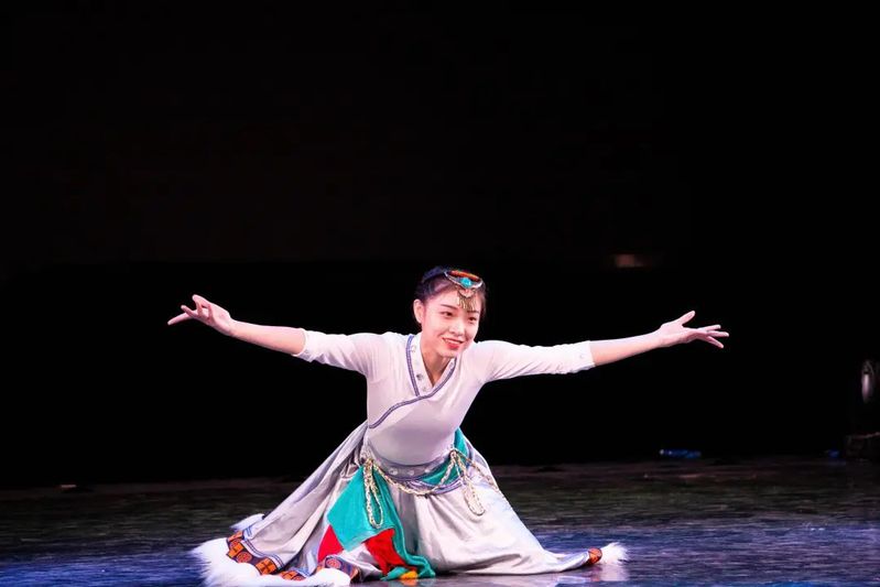 由舞蹈教育方向王杨编排并表演的《格桑梅朵》。主要呈现热巴鼓教学,以扛鼓转、缠头击鼓、藏族基本动律颤膝、拖步为主要元素,以达到训练学生的基本掌握热巴鼓的敲打旋转以及藏族基本腰胯的摆动为目的。