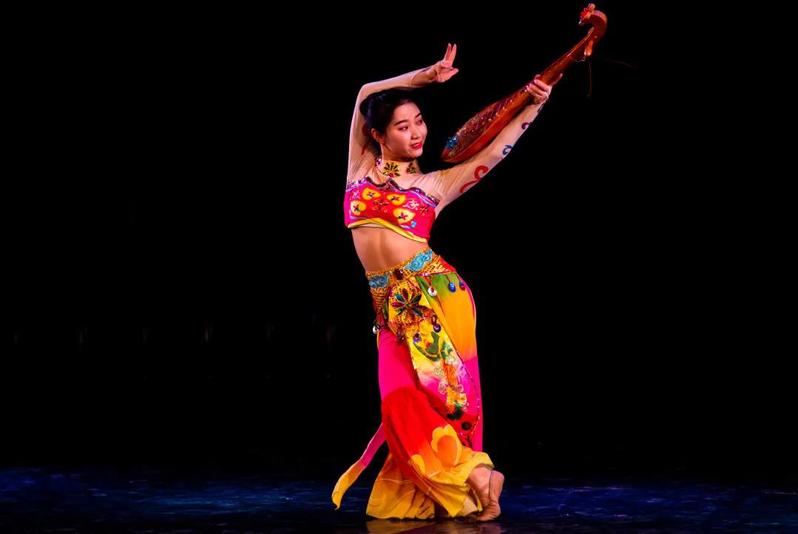 由编导方向的刘文静编创,2018级本科生周丽表演的《敦煌之舞》。音乐响起,舞者手拿琵琶翩翩起舞,尽情展现着敦煌舞蹈的美,只见舞者或旋转、或跳跃、一举一动之间尽现敦煌舞蹈的魅力!