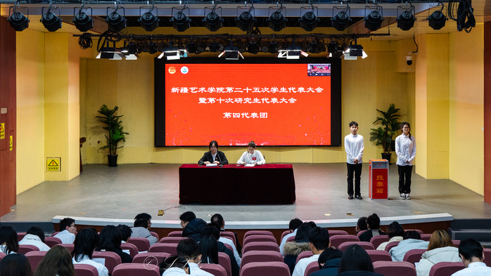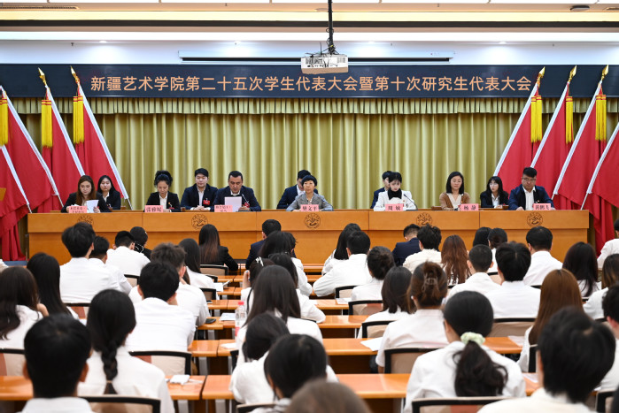 会上,自治区学联驻会主席周敏宣读了自治区学联《关于同意召开新疆艺术学院第二十五次学生代表大会暨第十次研究生代表大会顺利召开的批复》,大会审议通过了《新疆艺术学院学生会第二十四届委员会工作报告》《新疆艺术学院研究生会第九届委员会工作报告》,大会选举产生了新疆艺术学院学生会第二十五届、研究生会第十届委员会委员及主席团成员。