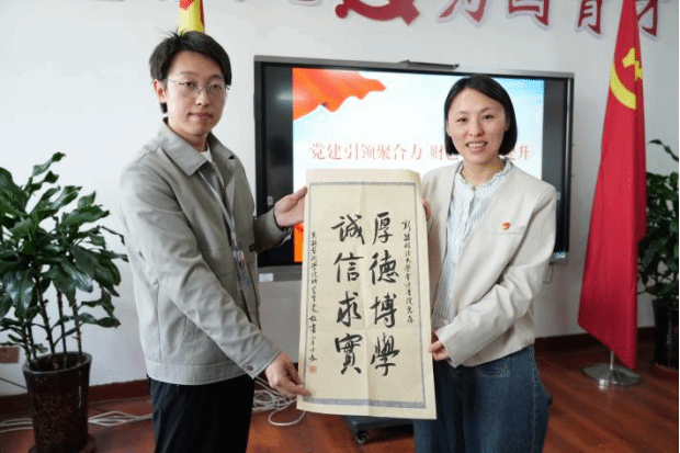 研讨交流环节,双方党员围绕“党建引领研究生教育高质量发展”“财艺学科交叉融合路径”等主题深入探讨。新疆艺术学院研究生代表结合艺术学科特色,分享了研究生培养及党建与艺术创作融合的实践经验;新疆财经大学师生则从财经学科视角,交流了党建赋能学术研究与人才培养的创新做法。此外,新疆艺术学院书法学院研究生向财大学子赠送手写书法书签,将传统书法艺术与廉洁修身、勤学笃行等寄语相融,展现艺术院校专业特色,为此次主题党日活动增添了浓厚的文化氛围。